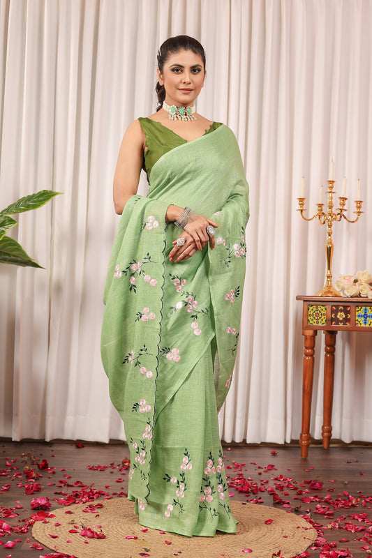 B H A K T I || Pure chiffon saree with Mukaish work and Kiran Lace