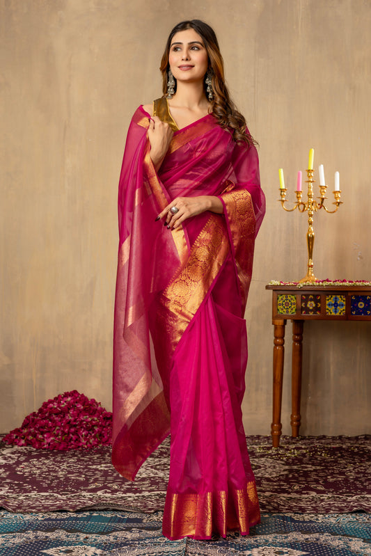 R O H I N I || Organza Tissue Saree with Zari Border