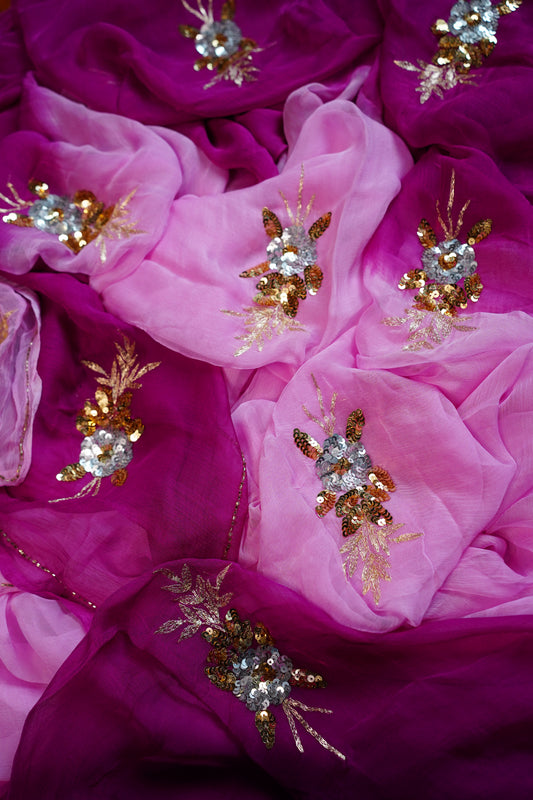 Rani Pink Pure Chiffon Saree with intricate GotaPatti Work