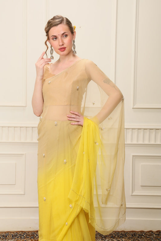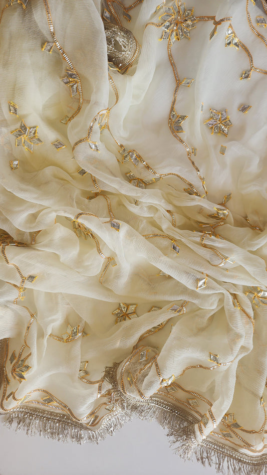 M A Y U R I || Chiffon Saree with Gota Patti Work ( Running Unstiched Blouse )