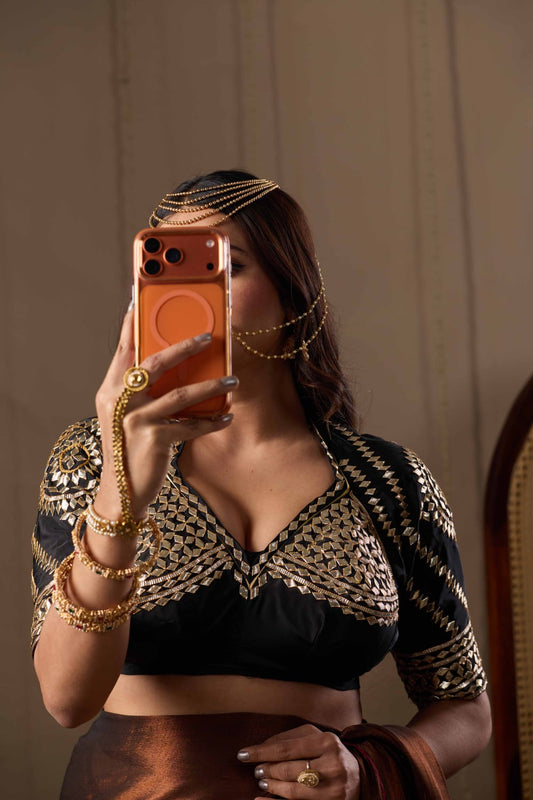 Black Tissue Saree + Ready to wear Aangi Blouse || Vismayee