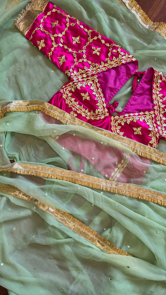 Pure Diamond Chiffon Saree with Gota Patti & Aangi Blouse Combo || Greeshma