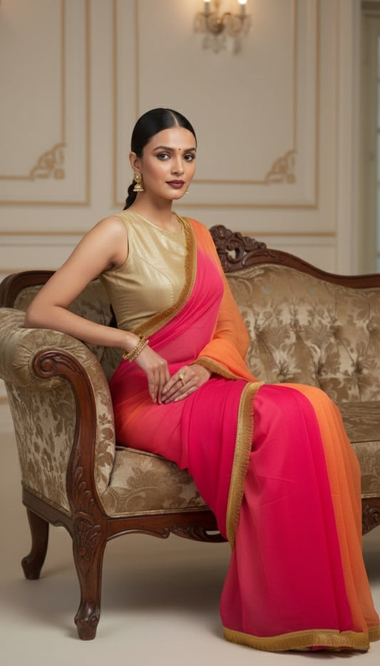 G U L A B O || Pure Chiffon Saree- Gota Patti