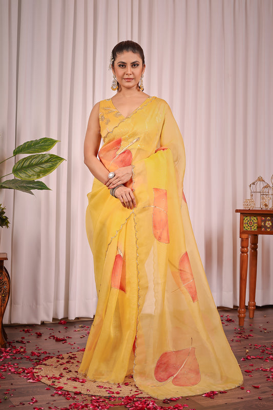 M A A Y A || Organza Saree with Hand Paint and Work