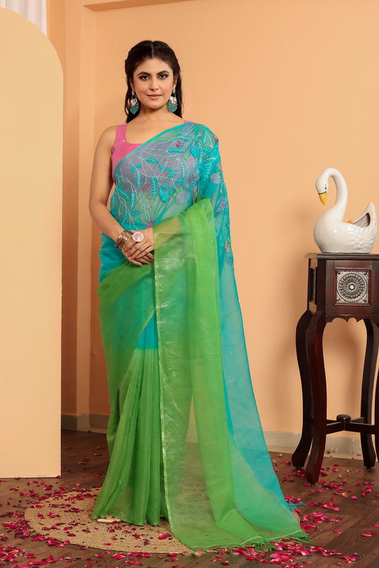 N A M I K A || Pure Organza Hand-Work Saree