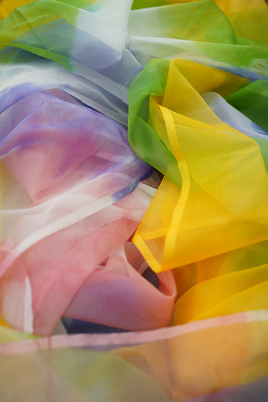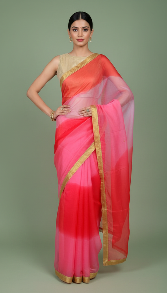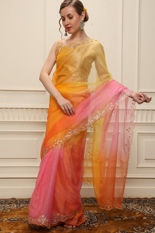 P U R N A || Multicolour Organza Saree with Kiran Lace