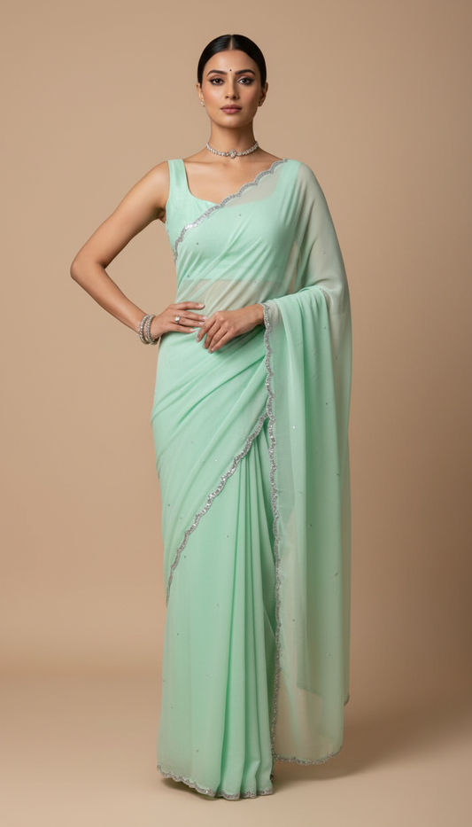 G A N D H A R V A || Organza Sequence work Saree