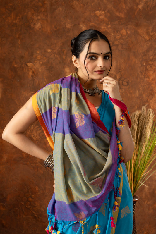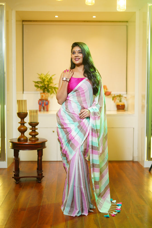 A M B I K A || Khadi Cotton Saree with Zari Strips