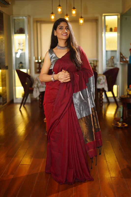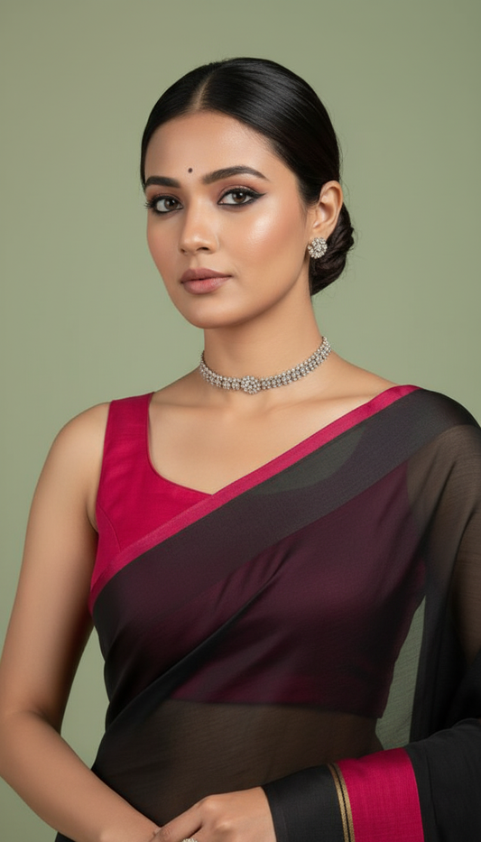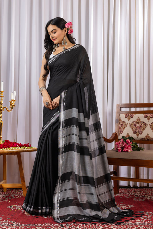 S O N A L I || Black Mull Cotton Saree with Red Border