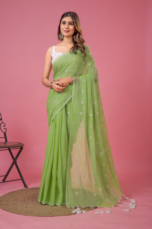 S H I U L I (LIGHT GREEN) || Mull Cotton Saree