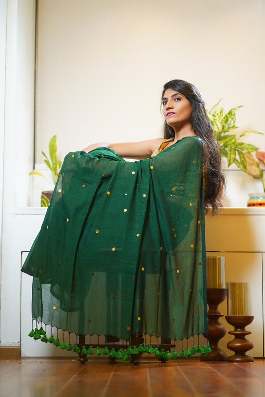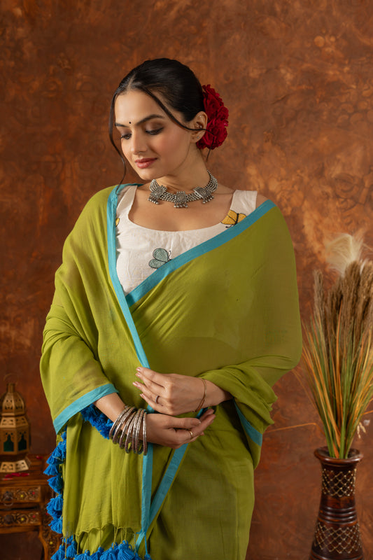 G U D H A L || Green Mull Cotton Saree