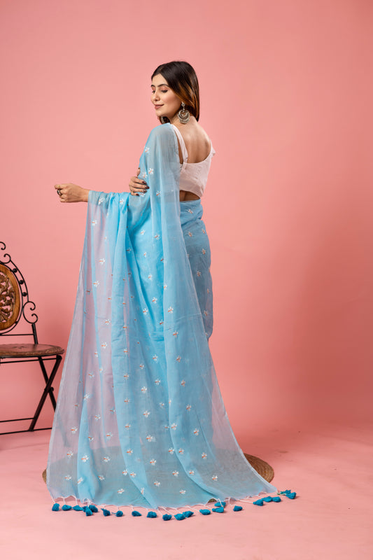 S H I U L I (SKY BLUE) || Mull Cotton Saree