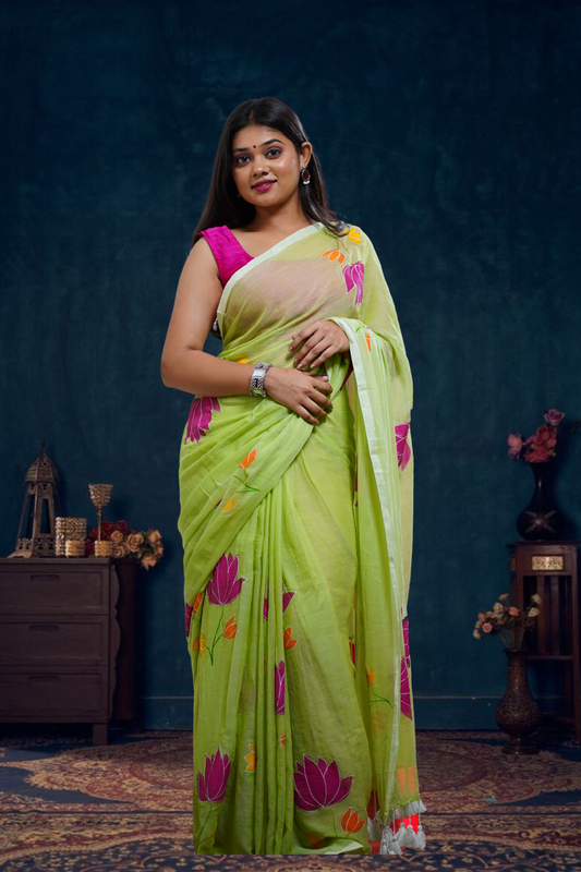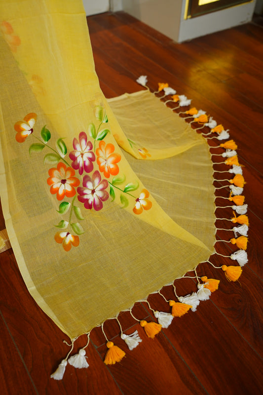 N E E R V A || Mull Cotton Saree with Hand Paint