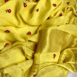 The delicate motifs, inspired by traditional Indian art, bring a rich cultural essence to the fabric. The combination of linen's elegance and the detailed embroidery creates a unique, graceful look perfect for any special occasion.
