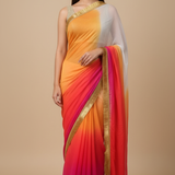 Multicolour Pure Chiffon saree with Mukesh work and Kiran Lace
