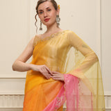 YELLOW, ORANGE AND PINK ORGANZA SAREE