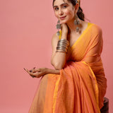 This Orange Mull Cotton Saree is a perfect blend of subtle elegance and intricate craftsmanship, featuring delicate sequence work that adds a touch of shimmer. The soft, breathable fabric and the graceful design make it a sophisticated choice for any special occasion.