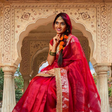 Red, Bannarasee Tissue Saree with Kiran Lace