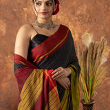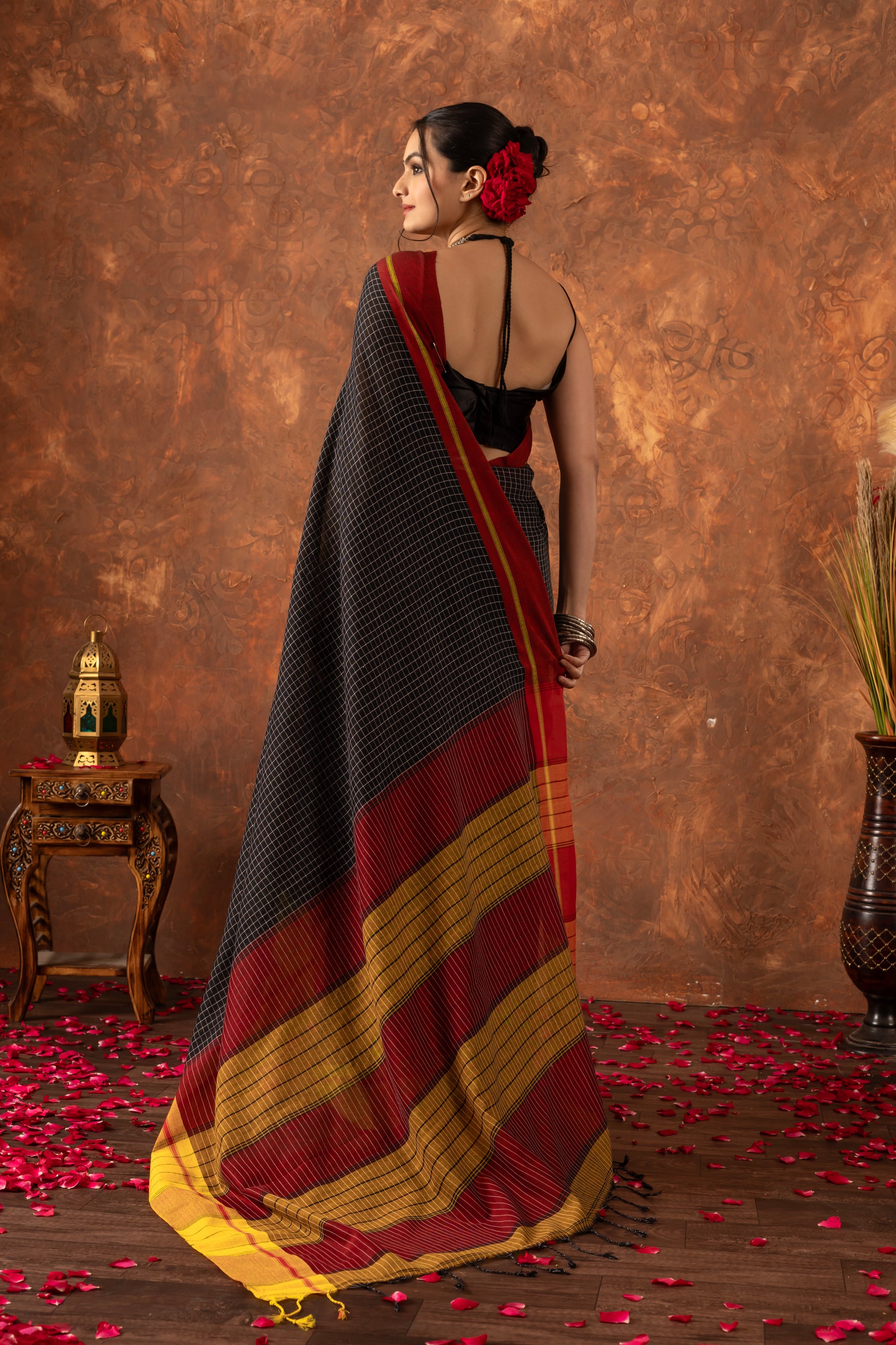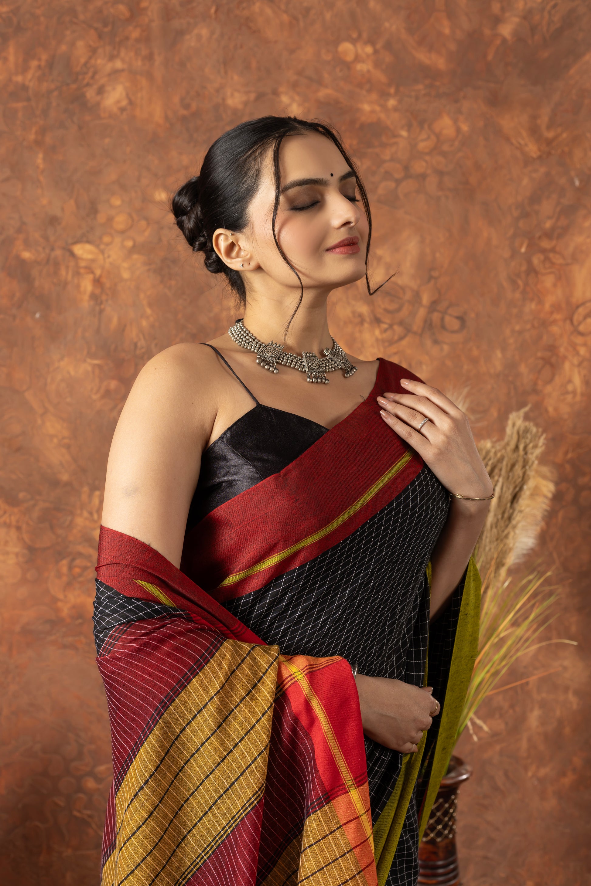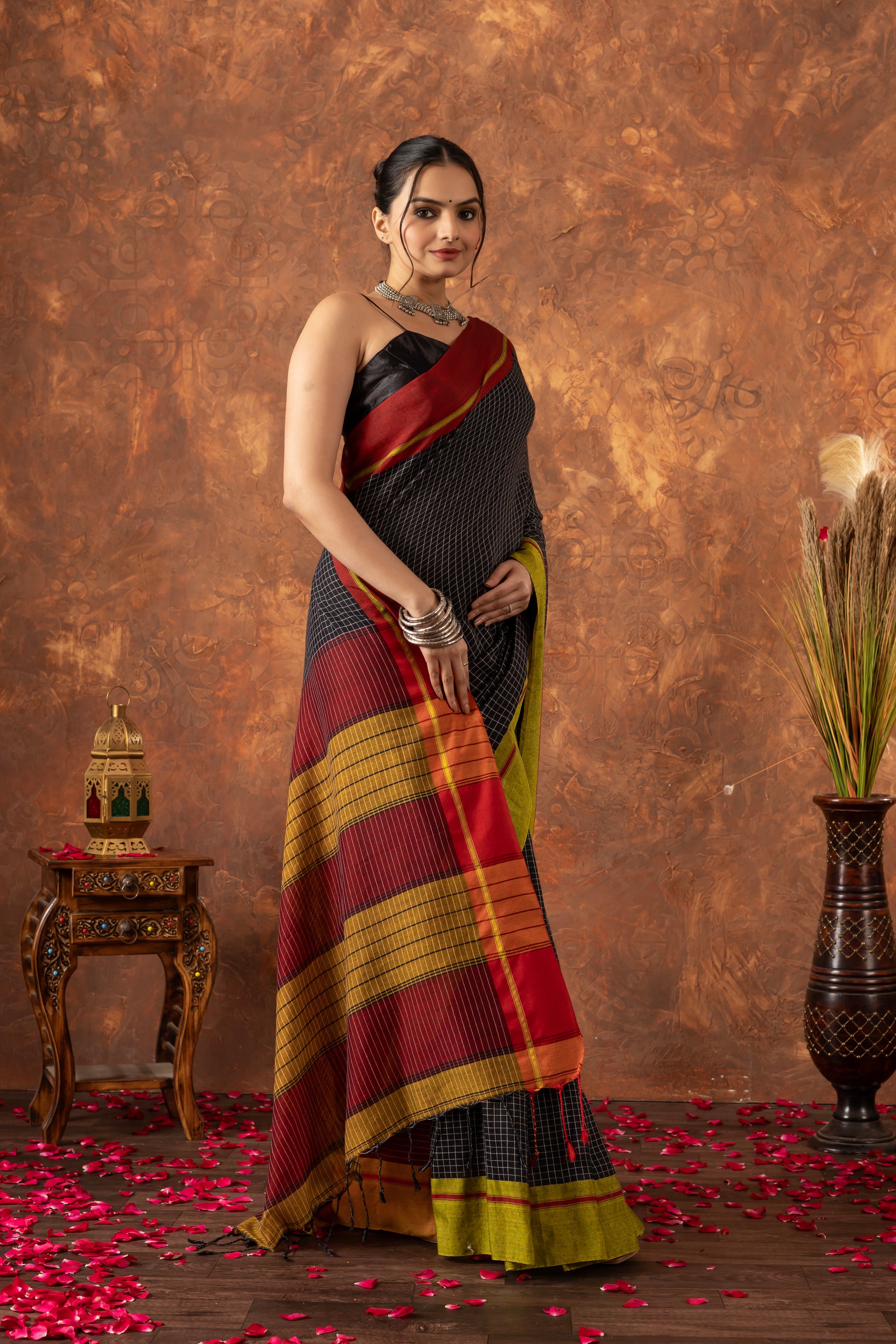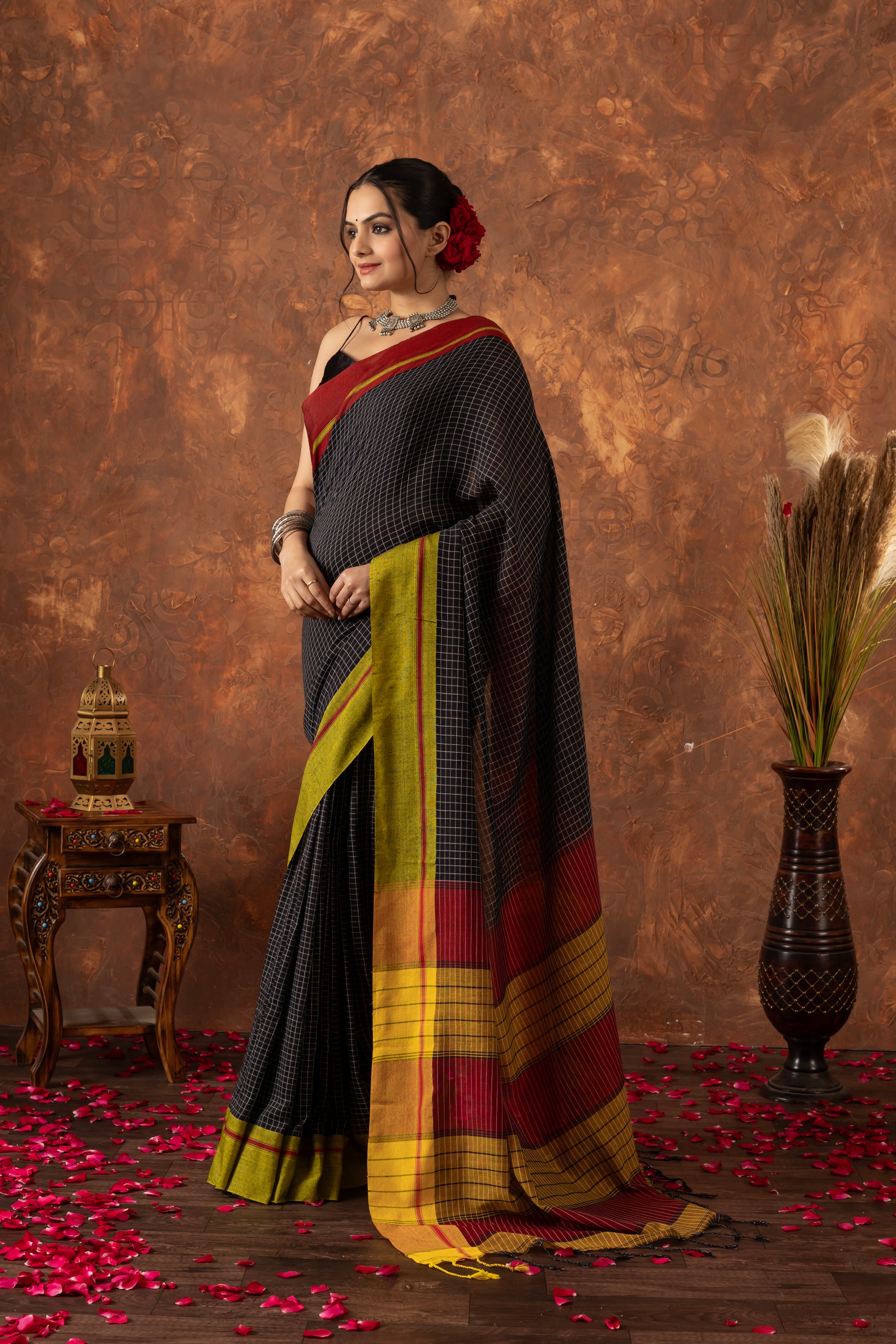 Each saree is meticulously crafted using the handloom technique, ensuring that every piece is unique and reflects the artistry of skilled artisans. The soft, lightweight fabric drapes effortlessly, making it perfect for any occasion—whether it's a festive celebration or a graceful evening gathering.