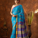 Each saree is meticulously crafted using the handloom technique, ensuring that every piece is unique and reflects the artistry of skilled artisans. The soft, lightweight fabric drapes effortlessly, making it perfect for any occasion—whether it's a festive celebration or a graceful evening gathering.