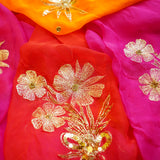 This is a Multicolour Chiffon Saree with beautiful embroidery in the body.