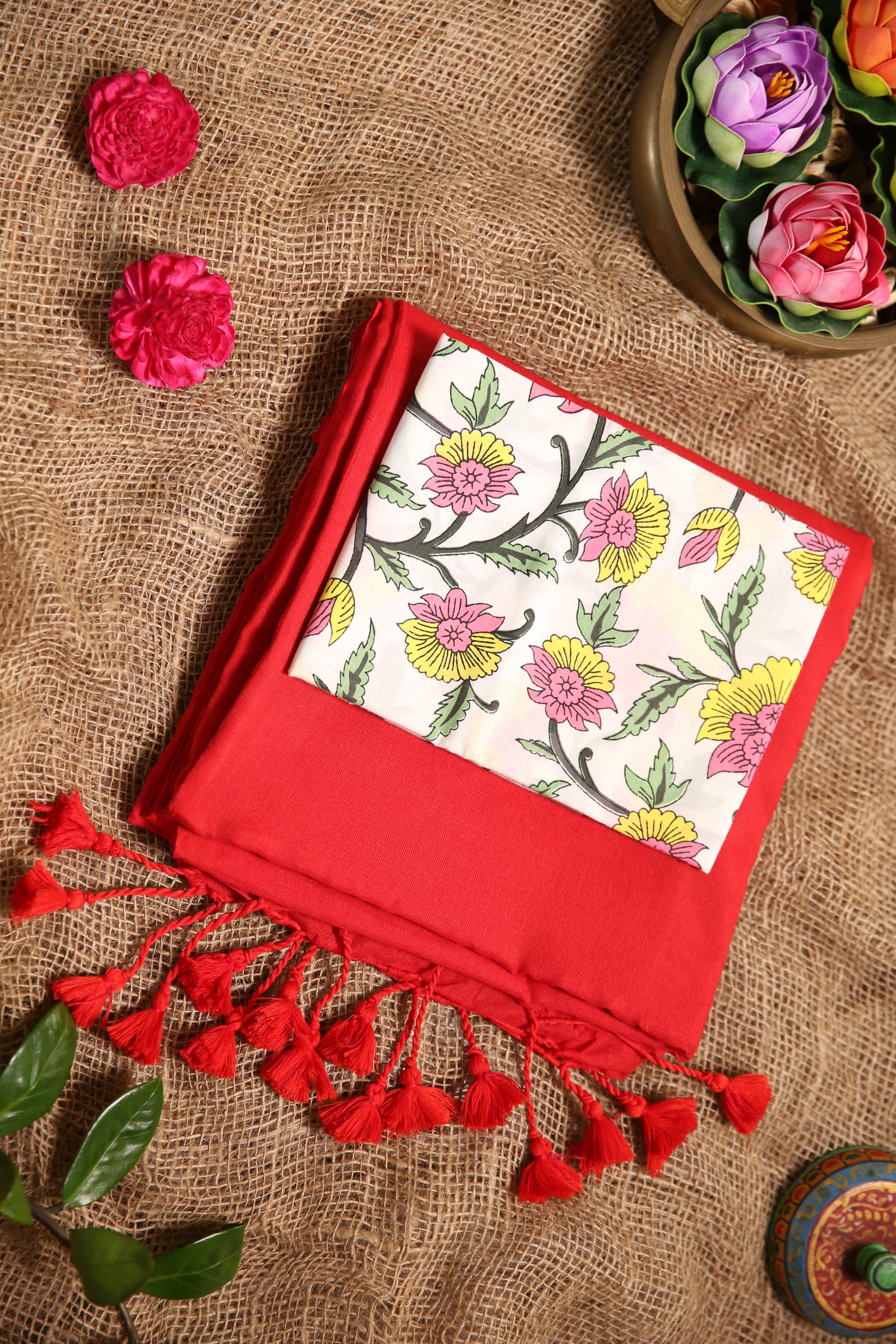 COTTON SAREE with MULTICOLOUR BLOUSE