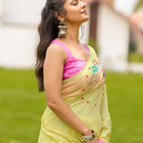 Yellow and Pink Embroidery Saree