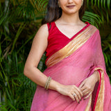 This Linen Saree is beautifully adorned with intricate embroidery, showcasing timeless craftsmanship. The delicate motifs, inspired by traditional Indian art, bring a rich cultural essence to the fabric. The combination of linen's elegance and the detailed embroidery creates a unique, graceful look perfect for any special occasion.