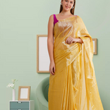 Yellow Raga Tissue Saree with Big Tussle