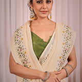 Cream Color Pure Linen Embroidery saree