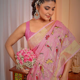 This Linen Saree is beautifully adorned with intricate Flower embroidery, showcasing timeless craftsmanship. The delicate motifs, inspired by traditional Indian art, bring a rich cultural essence to the fabric. The combination of linen's elegance and the detailed embroidery creates a unique, graceful look perfect for any special occasion.