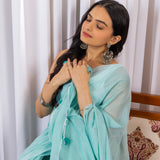 This vibrant Sky-Blue Saree features a blend of bold hues, creating a lively and refreshing look. Perfect for any occasion, its lightweight fabric ensures comfort without compromising style.