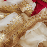 Pure Chiffon white saree with intricate Work with Gota Patti Lace
