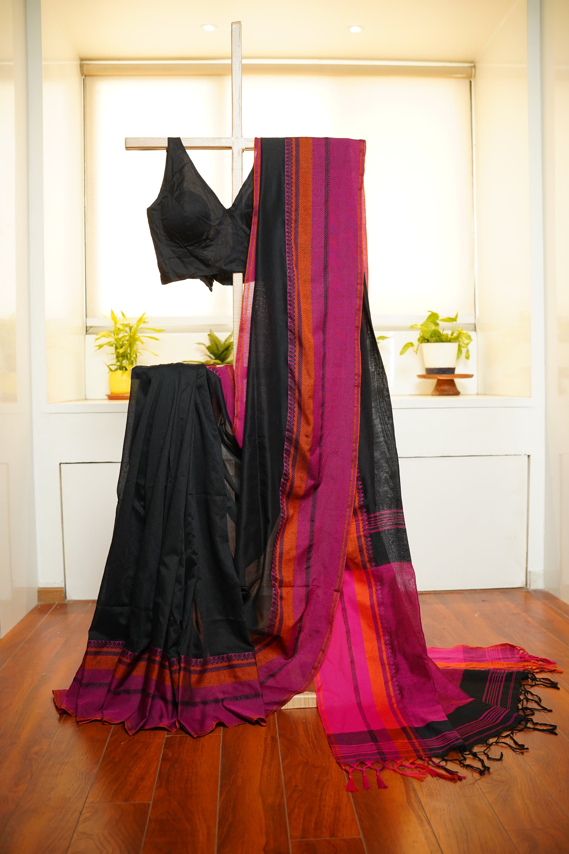 The Cotton Saree: A masterpiece born from tradition, woven with care, it captures the essence of elegance and ambition. Its delicate threads sing melodies of heritage and pride, a symbol of India's rich culture, cherished far and wide.