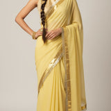 Lemon Yellow Pure Soft Organza saree with Mukesh work and Kiran Lace