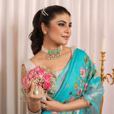 This Linen Saree is beautifully adorned with intricate Pichai art embroidery,