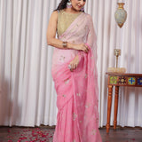 Baby Pink and White Jal Work Pure Chiffon Saree