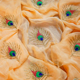 This is a Pure Chiffon Saree with beautiful Peacock Feather Hand Work.