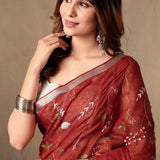 This Linen Saree is beautifully adorned with intricate Flower embroidery, showcasing timeless craftsmanship. The delicate motifs, inspired by traditional Indian art, bring a rich cultural essence to the fabric. The combination of linen's elegance and the detailed embroidery creates a unique, graceful look perfect for any special occasion.