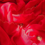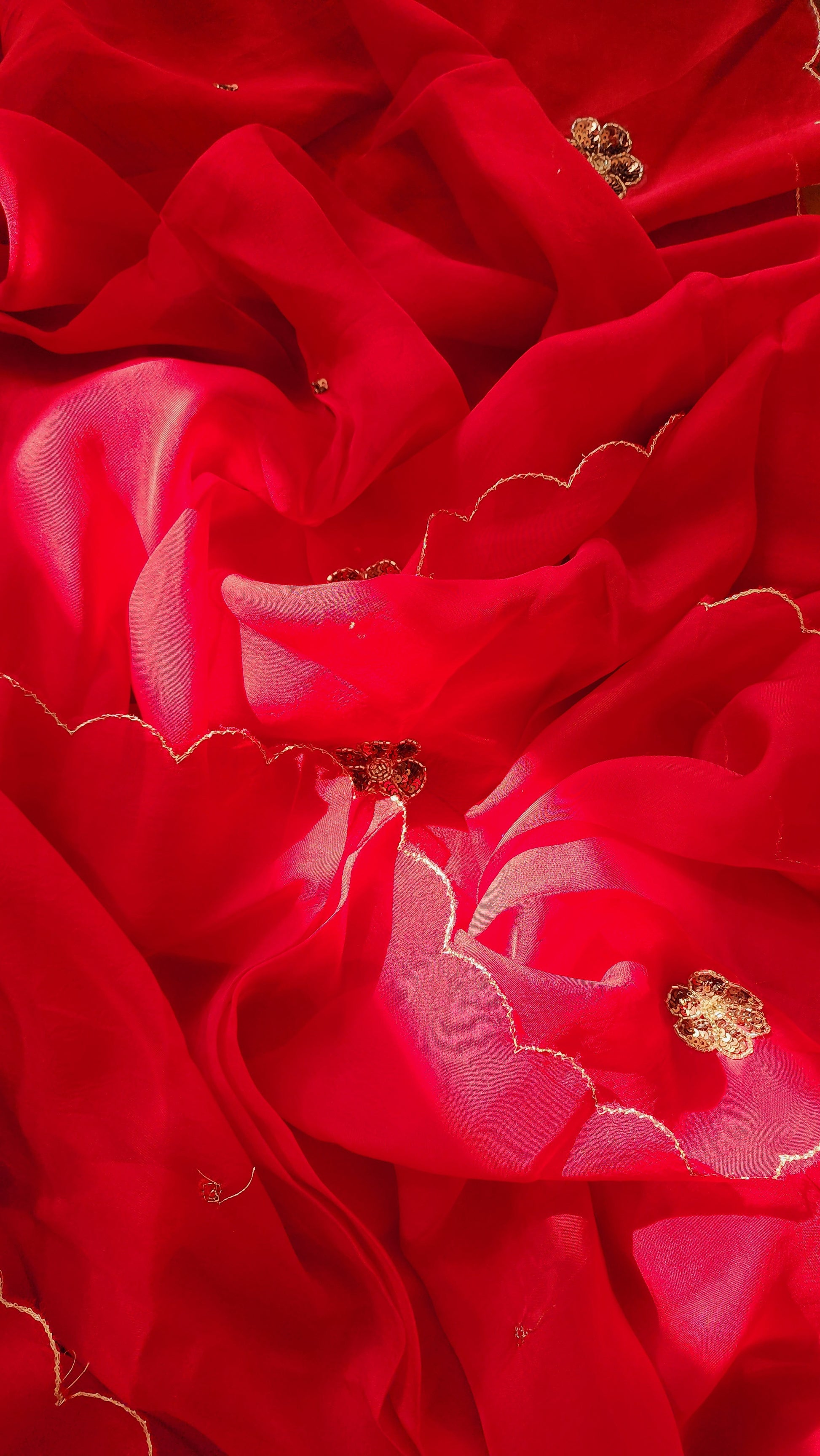 A Red Organza Saree with Sequence Work on the body and the stunning blend of elegance and tradition.