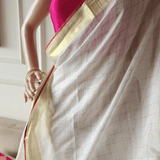 This is a Semi Linen Saree, with Zari Work all over the Body.