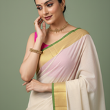 This is a mull cotton Saree, with green Zari Border