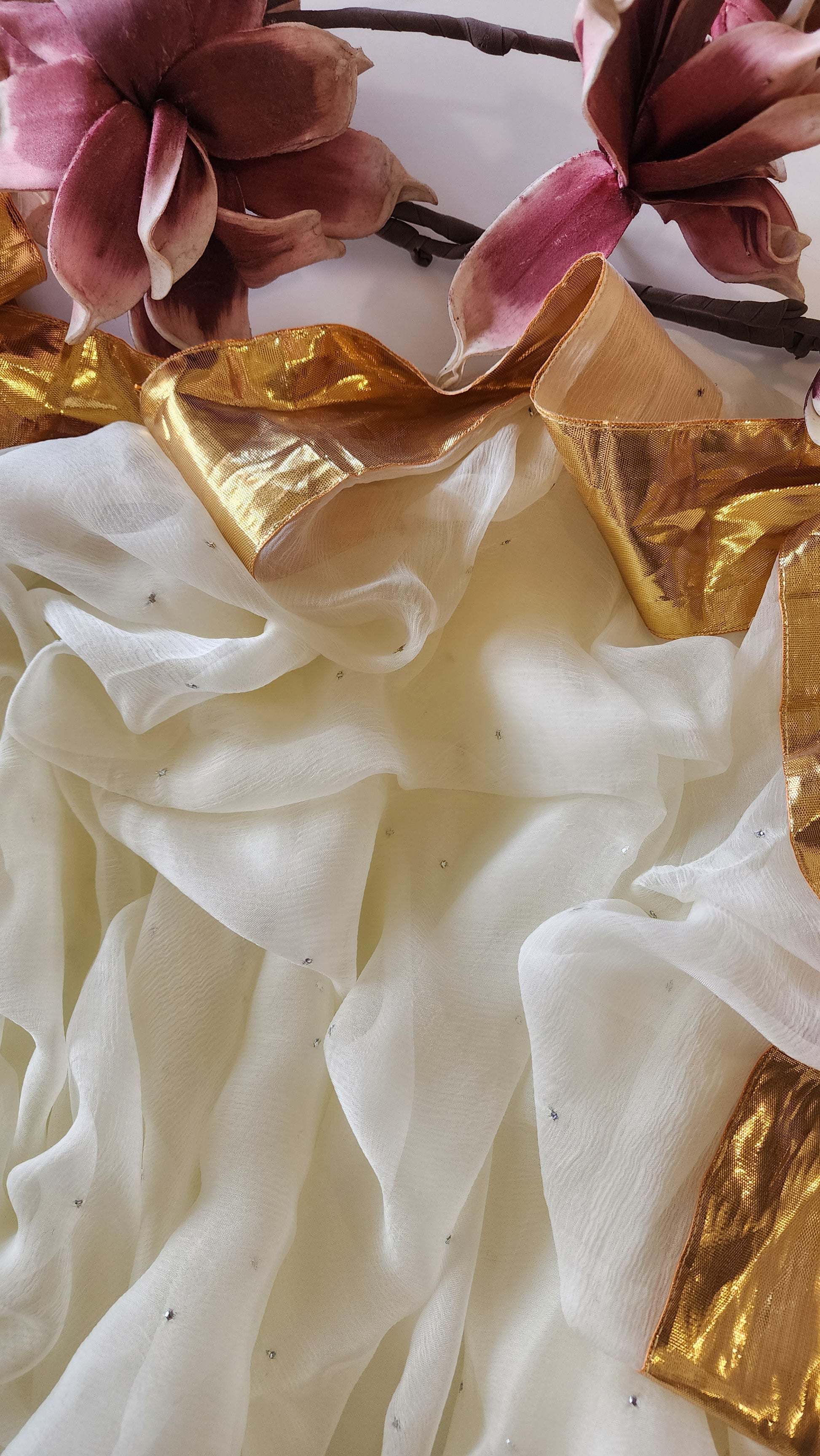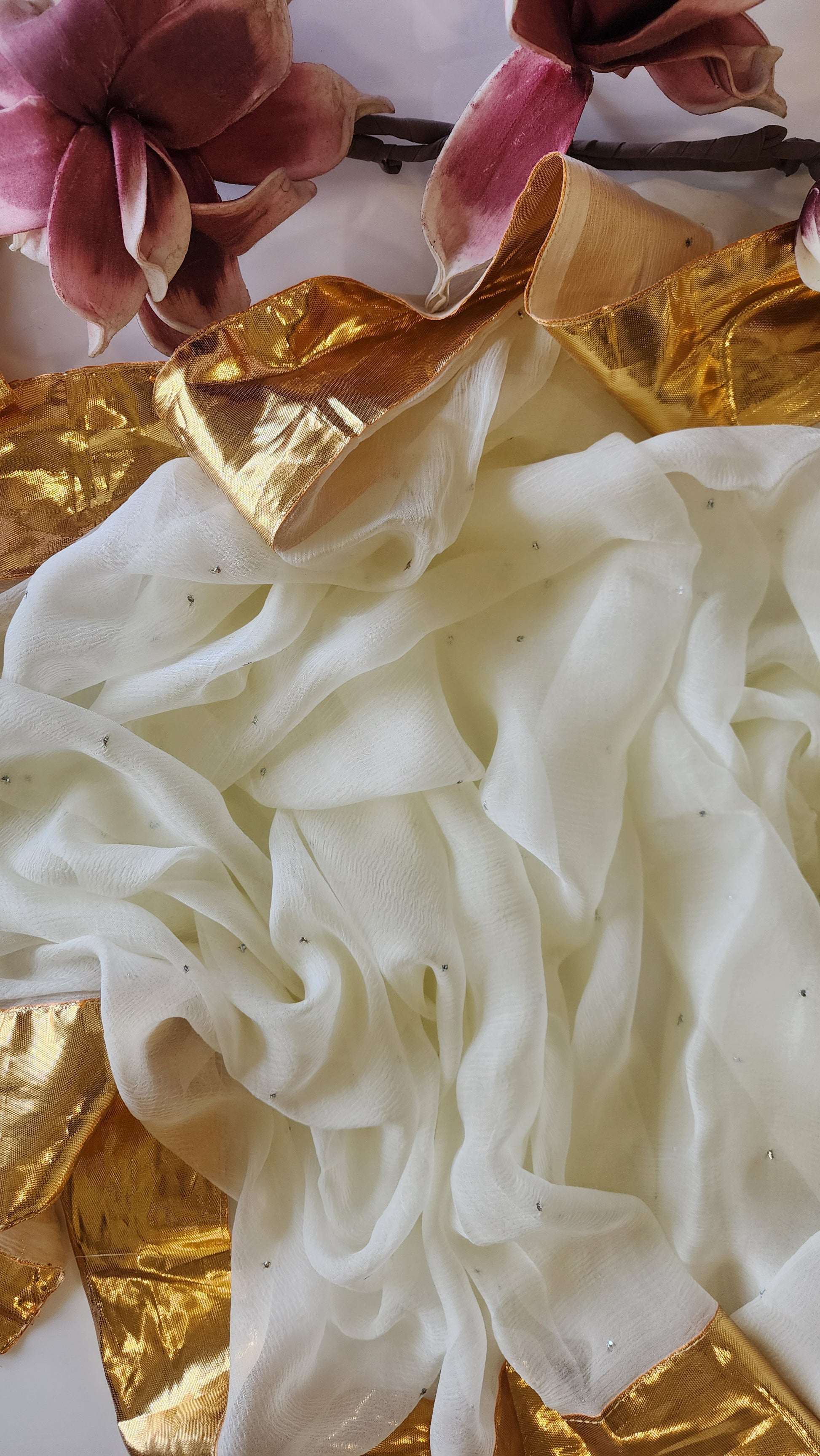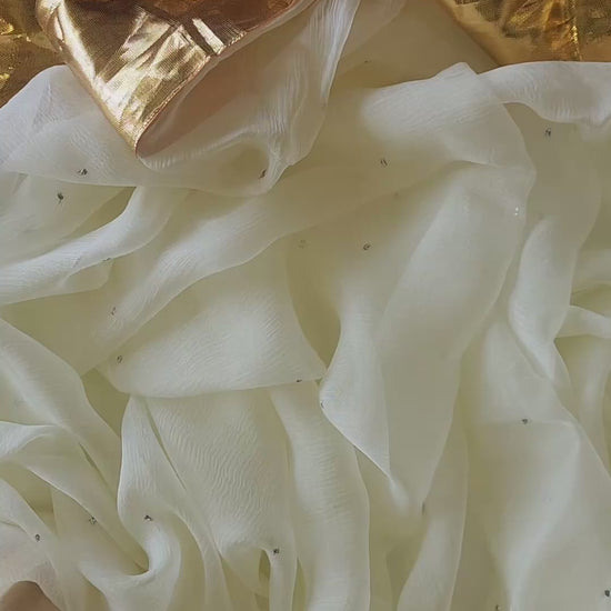 White Chiffon saree with Mukesh work and Gota Patti Lace