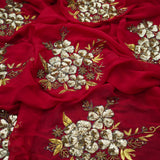 A Red Organza Saree with Sequence Work on the body and the stunning blend of elegance and tradition.
