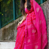 Pink Linen Saree with Rose Motif