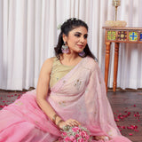 Baby Pink and White Jal Work Pure Chiffon Saree