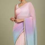 MULTICOLOUR ORGANZA SAREE WITH KIRAN LACE