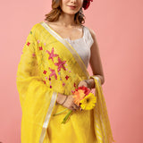 Yellow Pure Linen Hand Work Saree
