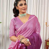 Purple Pure Linen Embroidery Saree