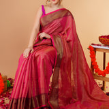 Each saree is meticulously crafted using the handloom technique, ensuring that every piece is unique and reflects the artistry of skilled artisans. The soft, lightweight fabric drapes effortlessly, making it perfect for any occasion—whether it's a festive celebration or a graceful evening gathering.